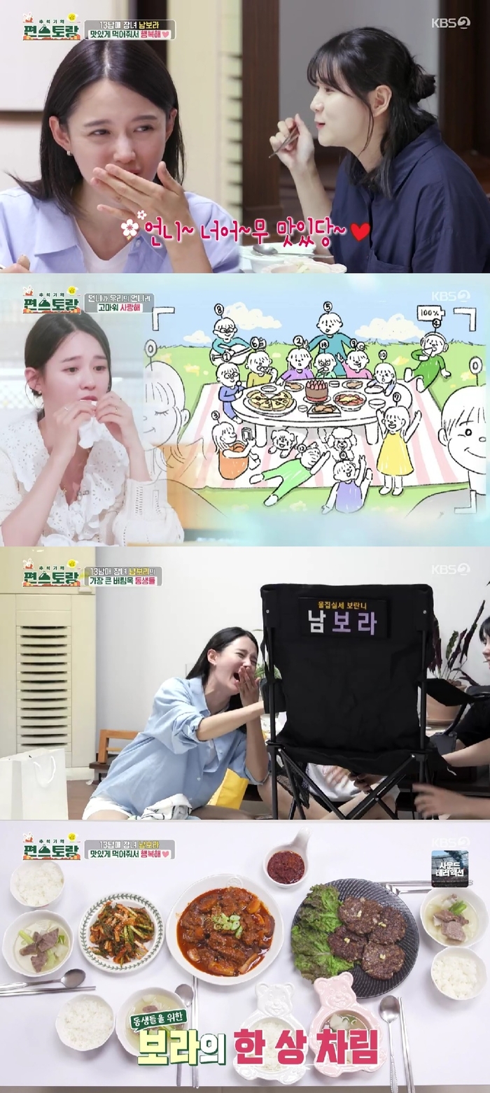 언니표 3종 한우사태 요리에 파김치를 먹은 동생들은 “완전 미쳤다”라며 엄지를 들어올렸고, 남보라는 “동생들 맛있게 먹는 것만 보면 또 해주고 싶다”라며 미소지었다.