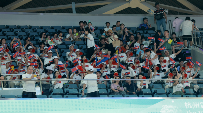 반대로 한국의 득점 때는 조용했다. 2쿼터 들어 한국이 힘을 내면서 역전에 성공하자 경기장은 고요 속으로 빠졌다. 후반은 말할 것도 없다. 간간이 북한의 득점이 나오면 큰 환호와 함성, 박수가 나왔다.