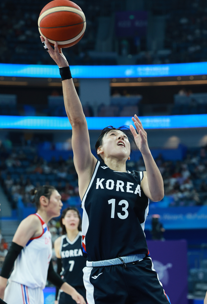 사실 5년 전에는 ‘동료’였다. 2018 자카르타-팔렘방 대회 당시 단일팀으로 나섰다. 그때 함께했던 로숙영과 김혜연을 이번에는 적으로 만났다. 박진아라는 장신 자원도 등장했다. 신장이 205㎝에 달한다. 198㎝의 박지수도 애를 먹을 수밖에 없었다.