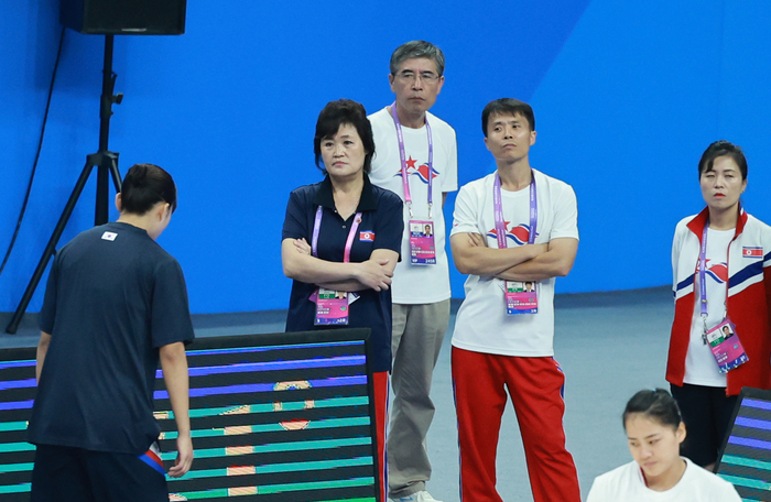 북한 선수들도 철저히 한국 선수들을 외면했다. 5년 전 단일팀으로 뛰었던 로숙영과 김혜연이 이번에도 왔다. 그러나 투명 인간 대하듯 한 모양새다.