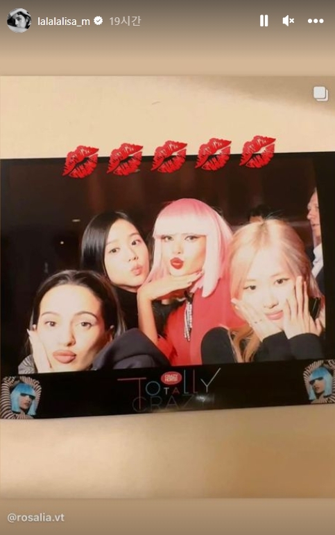 리사는 29일 자신의 인스타그램 스토리에 “첫 쇼 응원하러 와줘서 고마워. 럽유”라는 글을 올리며 지수와 로제의 인스타그램 계정을 태그했다.