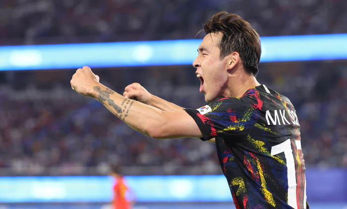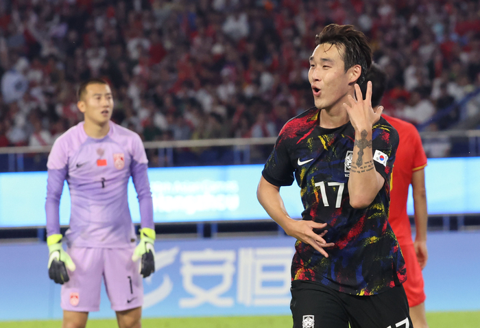 황 감독의 믿음에 보답하듯, 송민규는 그야말로 펄펄 날았다. 송민규는 왼쪽 측면에서 중국 수비를 괴롭혔다. 전반 14분에는 수비수 한 명을 완전히 제쳐낸 뒤 크로스를 올렸다. 굴절된 공이 고영준에게 향했고, 고영준의 오른발 슛은 골키퍼 선방에 막혔다. 득점으로 이어지지는 않았으나, 송민규의 강점이 발현된 장면이었다. 그리고 전반 35분에는 조영욱의 크로스를 뛰어들며 오른발로 밀어 넣어 추가골까지 작성했다. 득점 후 자신의 트레이드마크 세리머니를 펼친 뒤 양손을 귀에 갖다 대는 ‘도발’ 세리머니도 서슴지 않았다.