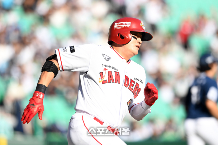 SSG 랜더스 추신수가 3일 인천 SSG랜더스필드에서 열린 2023 KBO리그 NC 다이노스와 경기 6회말 2사 2-3루 상황에서 NC 송명기를 상대로 2타점 적시타를 친 뒤 힘차게 베이스 러닝을 하고 있다. 2023. 10. 3. 문학 | 박진업기자 upandup@sportsseoul.com