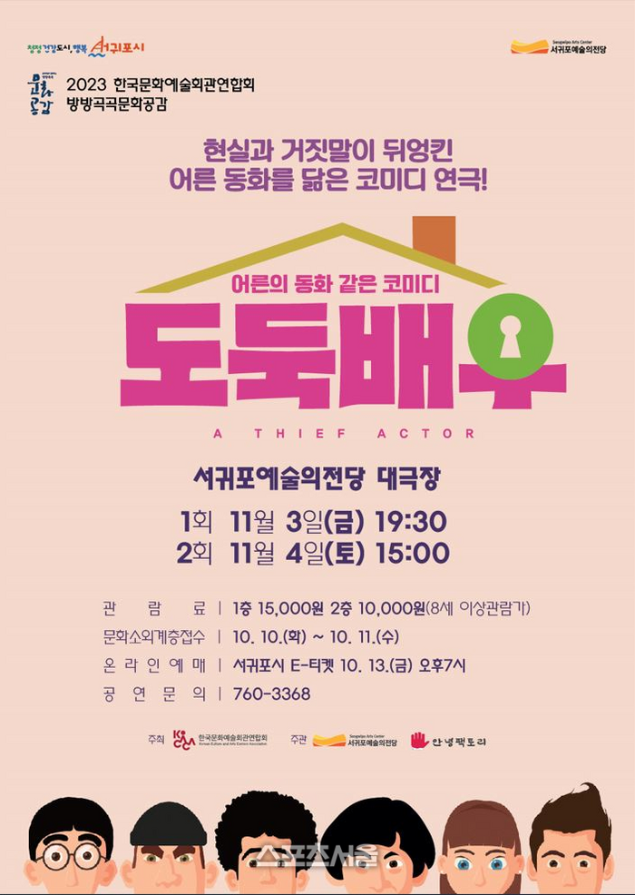 [스포츠서울ㅣ김기원기자] 서귀포시는 연극 ‘도둑 배우’를 오는 11월 3일(금) 오후 7시 30분과 4일(토) 오후 3시, 2회에 걸쳐 서귀포예술의전당 대극장에서 공연한다.