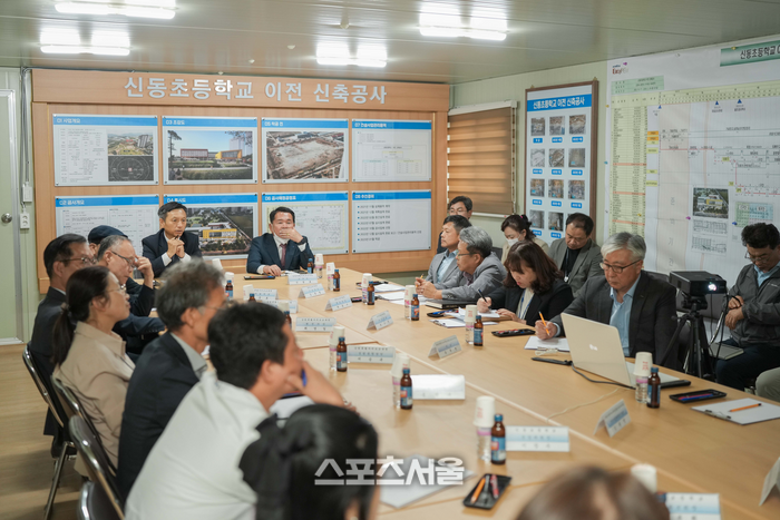 [스포츠서울ㅣ춘천=김기원기자] 강원특별자치도교육청(교육감 신경호)은 지난 4일(수) 신동초등학교 이전 신축공사 현장에서 신동초등학교 및 공사관계자들과 공사 지연에 대한 대책 회의를 실시했다고 밝혔다.