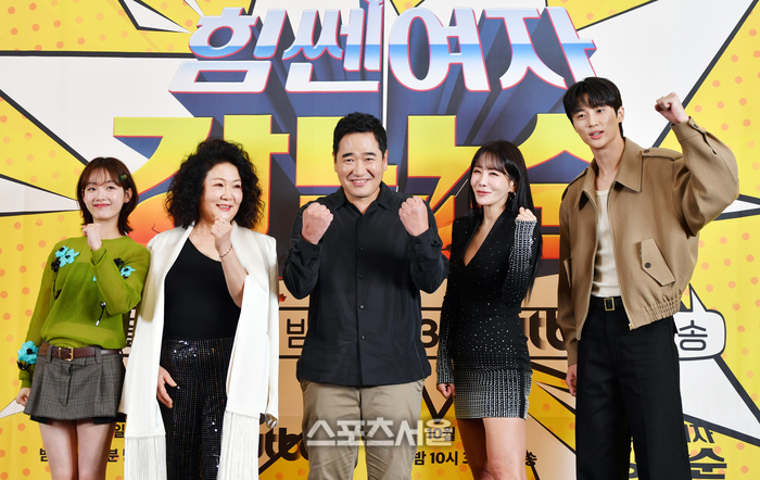 주인공 강남순역의 이유미, 김해숙, 김정은, 변우석이 김정식PD와 함께 5일 상암 스탠포드호텔에서 열린 제작발표회 무대에 올라 포토타임을 갖고 있다. 7일 첫 전파를 타는 JTBC ‘힘센여자 강남순’은 2017년 인기리에 방영됐던 ‘힘센여자 도봉순’의 스핀오프 드라마다. 출연 이유미, 김정은, 김해숙, 옹성우, 이승준, 한상조, 김기두, 주우재 2023.10.05.