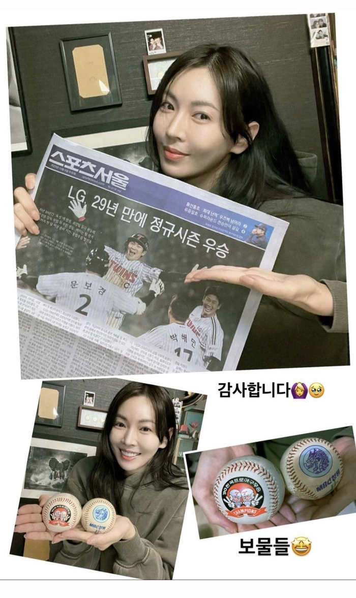 김소연은 5일 자신의 개인채널에 팬들 사이에서 화제를 모은 스포츠서울 신문을 들고 ‘찐’ LG팬의 면모를 보였다. 이와 더불어 MBC 청룡시절 야구공과 90년 우승 기념구를 인증하며 ‘내 보물’이라고 적었다.