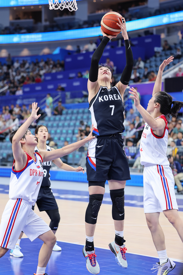 [스포츠서울 | 항저우=김민규기자]일본에 충격적 패배를 당하며 2006 도하 대회 이후 17년 만에 결승에 오르지 못한 한국 여자농구가 북한을 꺾고 동메달을 획득했다. 더 이상 물러설 곳이 없는 상황에서 마지막 자존심은 지킨 셈이다.