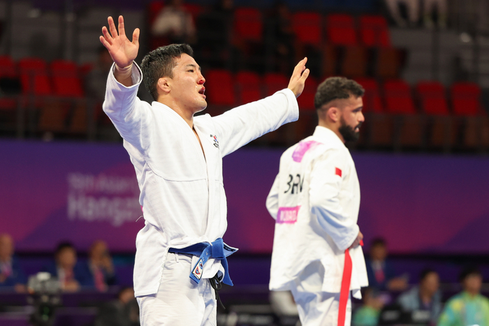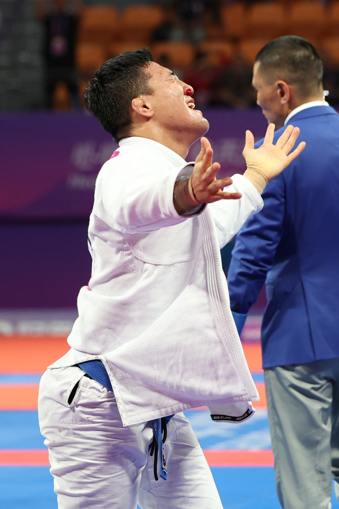 [스포츠서울 | 항저우=박준범기자] 구본철이 남자 주짓수 77㎏급 금메달을 목에 걸었다.
