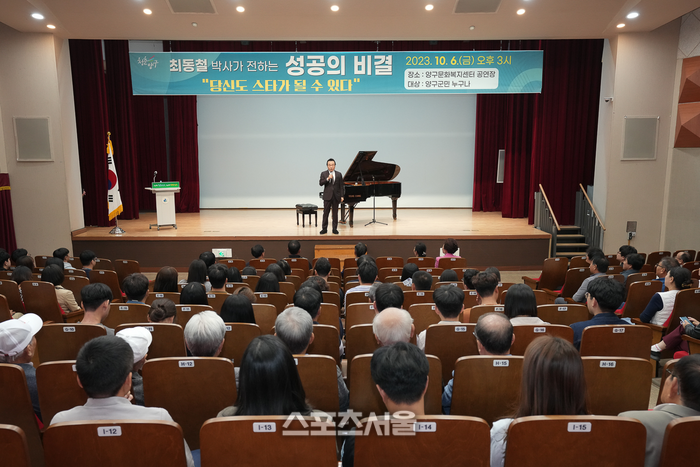 [스포츠서울ㅣ김기원기자] 2023년 양구군 명사 초청 특강이 6일 오후 양구문화복지센터 공연장에서 열려 최동철 대기자를 초청해 최동철 박사가 전하는 성공의 비결 ‘당신도 스타가 될 수 있다’를 주제로 강의가 진행됐다.
