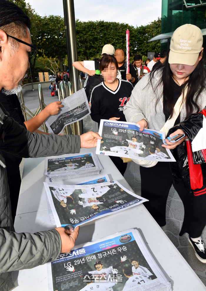 스포츠서울도 이에 동참했다. LG의 29년 만의 정규시즌 우승 소식을 다룬 지난 4일자 신문이 품귀 현상이 벌어지면서 특별 제작과 무료 배포를 결정했다. 4일자 1000부, 특별판으로 만든 1000부를 다시 제작해 총 2000부를 이날 잠실구장을 찾은 팬들에게 선물했다. 특별판에는 1990년과 1994년 우승 소식이 들어간 1면을 되살려 첨부했다. 광고가 들어가는 공간에는 LG 정규시즌 우승 엠블럼과 선수 사진을 넣었다.