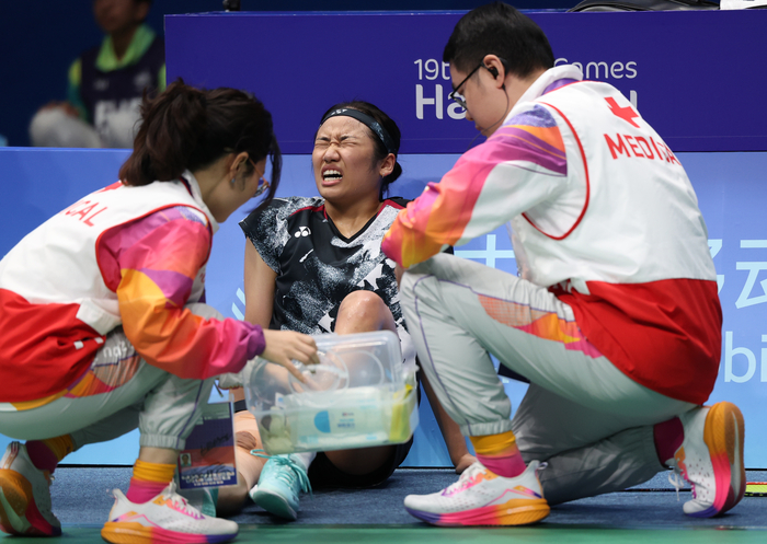 그리고 18-17로 앞선 상황에서 안세영은 오른 무릎 통증을 호소하며 코트에 주저앉았고 메디컬 치료를 받았다. 그러나 냉정을 되찾은 안세영은 21-18로 첫 게임을 마무리했다.
