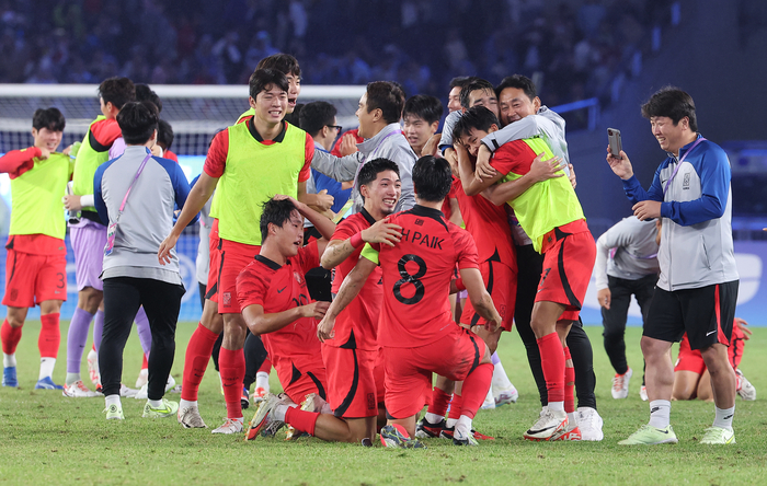 대회 내내 ‘평정심’을 유지하던 황 감독도 경기 후 환호했다. 코칭스태프들과 얼싸안았고, 기념사진도 찍었다. 그 와중에 ‘캡틴’ 백승호(전북 현대)는 눈물을 흘렸고, 황 감독과 진한 포옹을 나누기도 했다.