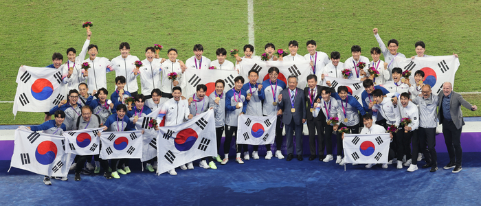 황선홍 감독이 이끄는 아시안게임 남자 축구대표팀은 7일 중국 항저우 황룽스포츠센터에서 열린 2022 항저우 아시안게임 남자 축구 일본과 결승전에서 2-1로 승리했다. 전승으로 대회 3연패의 위업까지 달성했다.