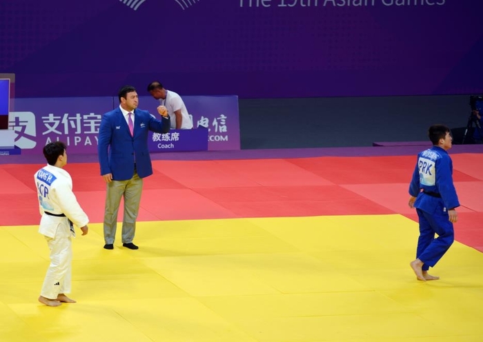 유도 남자 73㎏급 16강전에서는 남북대결이 펼쳐졌다. 한국 강헌철(27·용인시청)과 북한 김철광(27)은 지난 2018년 세계선수권대회에서 한국 선수들과 단일팀을 구성해 출전했던 친분이 있어 훈훈한 모습이 기대됐다.