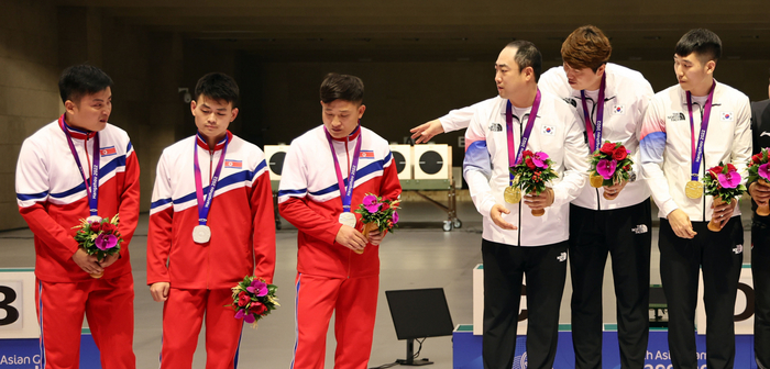 남북이 결승에서 맞붙은 사격에서도 북한의 결례는 이어졌다. 지난달 25일 남자 사격 10m 러닝타깃 단체전에서 우리나라가 접전 끝에 승리를 거뒀다. 한국 대표팀은 2위를 한 북한과 총점은 1668점으로 같았으나, 이너텐(10점 정중앙) 횟수에서 앞섰다. 한국은 39차례, 북한은 29차례 이너텐을 맞혀 북한에 역전승을 거뒀다.