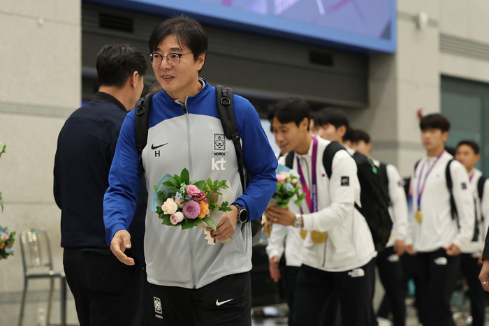 황선홍(55) 감독이 이끄는 24살 이하(U-24) 한국 축구대표팀은 이날 입국장에 들어선 뒤, 꽃다발과 플래카드를 든 여성 등 수백명의 팬들의 열렬한 환영을 받으며 남자축구 아시안게임 3연패 쾌거를 새삼 실감했다.