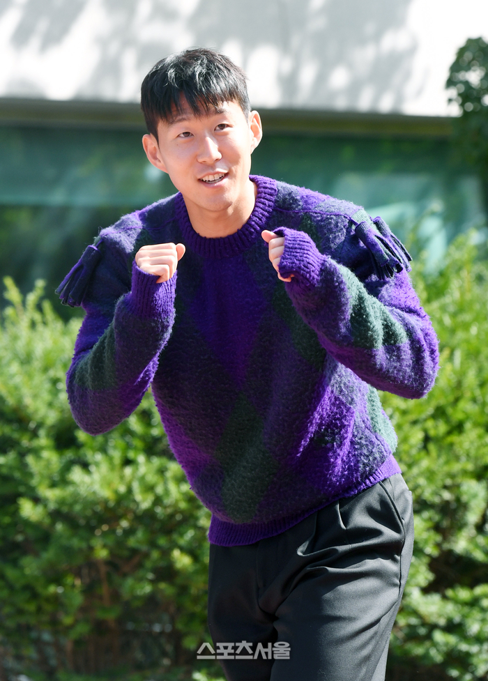친선경기를 위해 축구국가대표팀에 소집된 손흥민이 9일 오후 파주 축구국가대표트레이닝센터에 입장하면서 후배들의 아시안게임 금메달을 축하하고 있다. 2023. 10. 9. 파주 | 박진업기자 upandup@sportsseoul.com