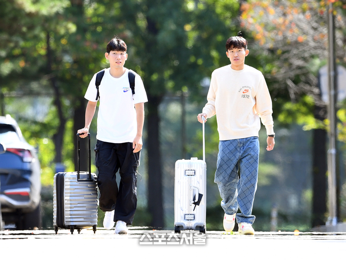 친선경기를 위해 축구국가대표팀에 소집된 홍현석(왼쪽)과 정우영이 9일 오후 파주 축구국가대표트레이닝센터(NFC)에 입장하고 있다. 2023. 10. 9. 파주 | 박진업기자 upandup@sportsseoul.com