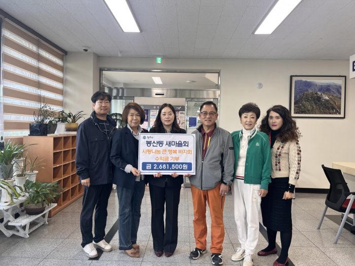 이날 전달된 성금은 봉산동새마을회에서 지난 6일 개최한 ‘사랑나눔 큰 행복 바자회’의 수익금으로 마련했다.
