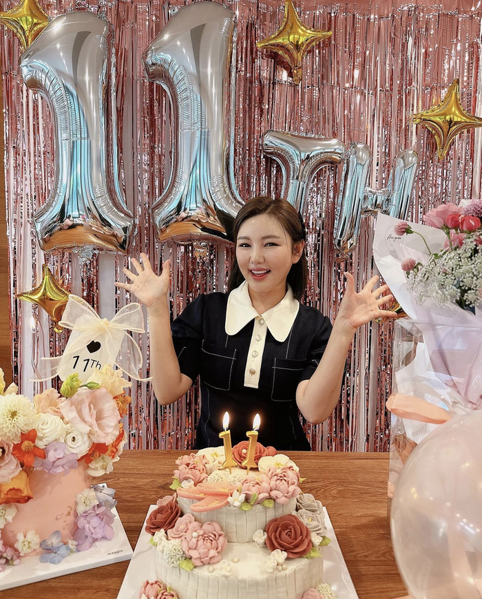 사진 속 송가인은 ‘11th’ 모양의 풍선으로 장식된 방에서 밝게 웃고 있다. 또 다른 사진에는 ‘11’ 모양의 초가 꽂힌 2단 케이크가 눈에 띈다. 꽃이 가득한 케이크에는 “가인님 앞으로 111주년 더 함께해요!”라고 적혀있다.