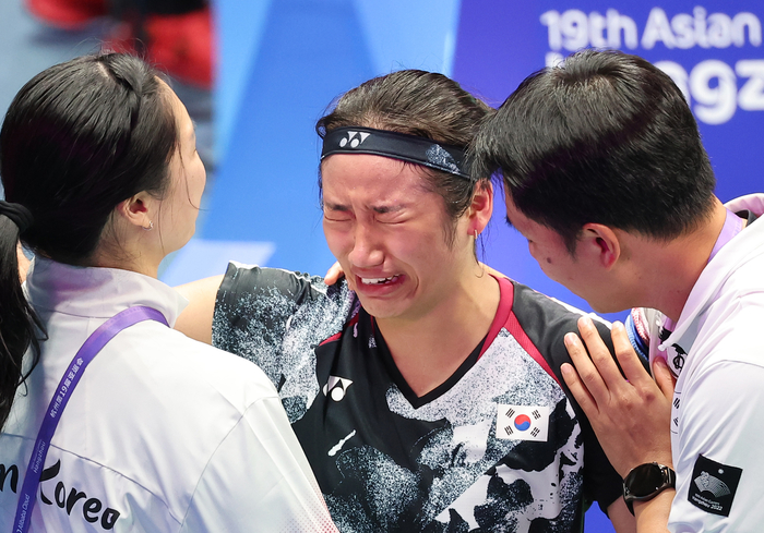 지난 7일 열린 2022 항저우아시안게임 배드민턴 여자단식 결승에서 오른무릎 통증에도 중국의 천위페이를 누르고 금메달을 따내며 전국민한테 진한 감동을 선사했던 안세영(21·삼성생명).