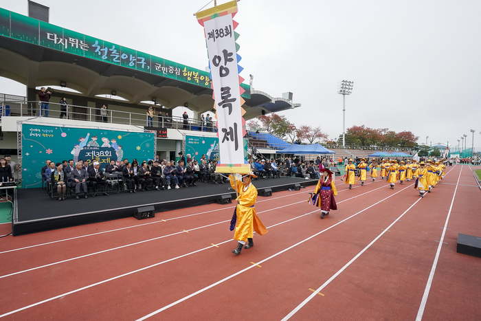 전국 | 강원 [포토]양구군, ‘제38회 양록제’ 입장식 열려 입력2023-10-14 14:22:36 북마크 페이스북 트위터 SNS 더보기 가글자크기설정 인쇄 SNS 더보기 닫기 네이버밴드 네이버블로그 URL복사 글자크기 설정 메뉴 닫기 글자크기 설정 시 다른 기사의 본문도동일하게 적용됩니다. 가 가 가 가 가 [스포츠서울ㅣ김기원기자] 제38회 양록제 입장식이 14일 오전 양구군 종합운동장에서 열렸다.acdcok@hanmail.net 기사추천 0