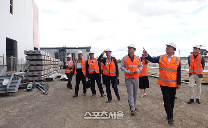 이날 첫 일정은 호주 질롱에 건설 중인 한화에어로스페이스 공장 건설 현장에 방문, 건설 현황 및 향후 생산계획 등의 설명을 듣고 현지 관계자들을 격려했다.