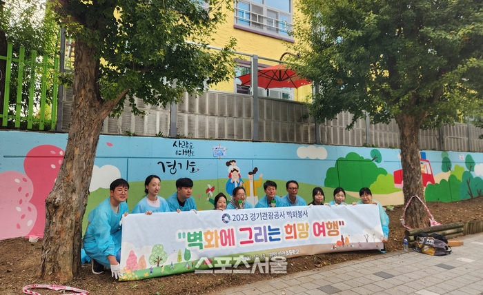 〔스포츠서울│수원=좌승훈기자〕경기관광공사는 지난 13일 사회공헌활동 일환중 하나로 ‘여행 벽화 그리기’ 봉사활동을 펼쳤다.