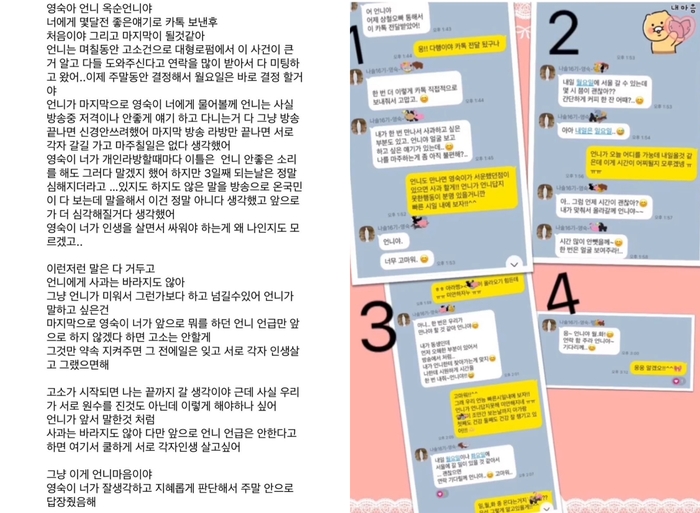공개한 사진에는 옥순이 영숙에게 보낸 편지와 함께 둘이 나눈 대화 사진이 담겼다.