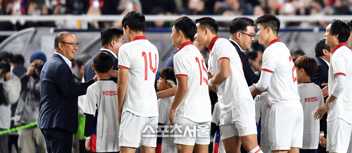 이날 경기에 앞서 반가운 소식이 전해졌다. 박항서 전 감독이 격려자로 한국과 베트남전을 방문한 것. 박 전 감독은 정몽규 대한축구협회장, 베트남 문화체육관광부 차관, 이석재 경기도축구협회장 등과 함께 경기를 앞두고 양 팀 선수들을 격려했다. ‘캡틴’ 손흥민과는 진한 포옹도 나눴다.