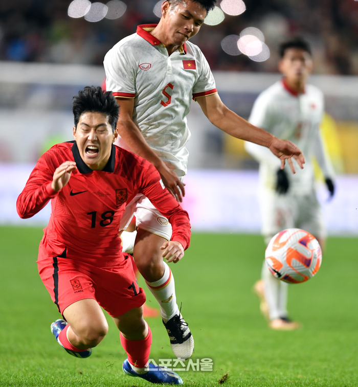 스포츠 | 축구 [포토]그라운드 나뒹구는 이강인 입력2023-10-17 22:18:22 북마크 페이스북 트위터 SNS 더보기 가글자크기설정 인쇄 SNS 더보기 닫기 네이버밴드 네이버블로그 URL복사 글자크기 설정 메뉴 닫기 글자크기 설정 시 다른 기사의 본문도동일하게 적용됩니다. 가 가 가 가 가 대표팀 이강인이 17일 수원월드컵경기장에서 열린 대한민국-베트남 A매치 후반 베트남 지압 투안과 볼을 다투다 쓰러지고 있다. .2023.10.17.수원 | 강영조기자 kanjo@sportsseoul.com 기사추천 0