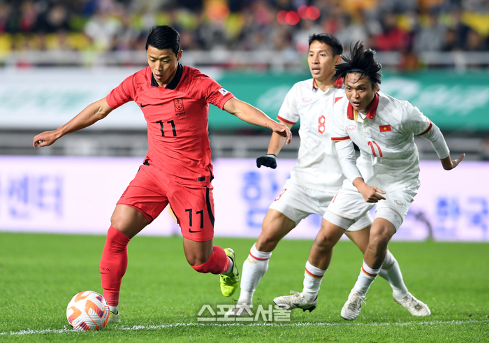 축구대표팀 공격수 황희찬(울버햄턴)은 17일 수원월드컵경기장에서 열린 베트남과 10월 A매치 평가전에서 선발 출전해 왼쪽 측면을 부지런히 누볐다. 특유의 저돌적인 드리블과 돌파가 돋보였다. 전반 26분에는 이재성의 감각적인 킬패스를 받아 왼발 슛으로 추가골을 작성했다. 후반 14분에는 손흥민(토트넘)의 득점을 도왔다. 대표팀도 6-0으로 승리, 10월 A매치를 마무리했다.