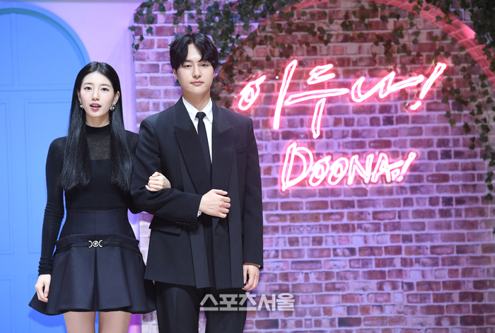 배우 수지(왼쪽)와 양세종이 18일 서울 강남구 코엑스 신한카드 아티움에서 진행된 넷플릭스 새 시리즈 '이두나' 제작발표회에서 취재진을 향해 포즈를 취하고 있다. 평범한 대학생 '원준'이 셰어하우스에서 화려한 K-POP 아이돌 시절을 뒤로 하고 은퇴한 '두나'를 만나게 되며 벌어지는 이야기를 담은 로맨스 드라마로 배우 수지와 양세종 등이 출연하며 이정효 감독이 연출을 맡았다. 2023. 10. 18. 박진업기자 upandup@sportsseoul.com