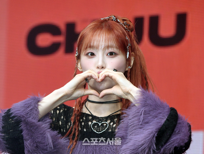 가수 츄가 18일 광진구 예스24 라이브홀에서 진행된 첫 번째 미니 앨범 '하울(Howl)' 발매 기념 미디어 쇼케이스에서 취재진을 향해 포즈를 취하고 있다. 박진업기자 upandup@sportsseoul.com