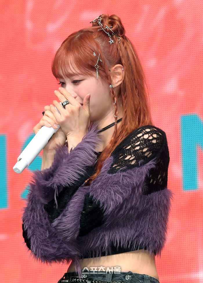 가수 츄가 18일 광진구 예스24 라이브홀에서 진행된 첫 번째 미니 앨범 '하울(Howl)' 발매 기념 미디어 쇼케이스에서 전 소속사와의 갈등과 관련해 이야기를 하다가 눈물을 흘리고 있다. 2023. 10. 18. 박진업기자 upandup@sportsseoul.com
