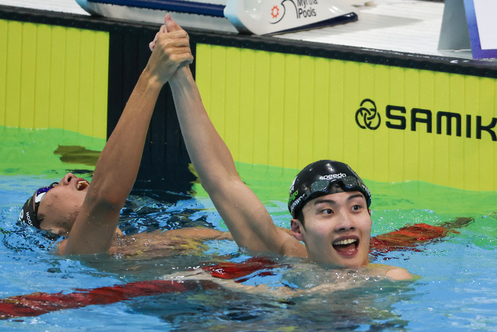 황선우는 5번 레인에 배정됐다. 바로 옆 6레인에는 2022 항저우 아시안게임 자유형 50m서 ‘깜짝’ 금메달을 따낸 지유찬(대구시청)이 자리했다.