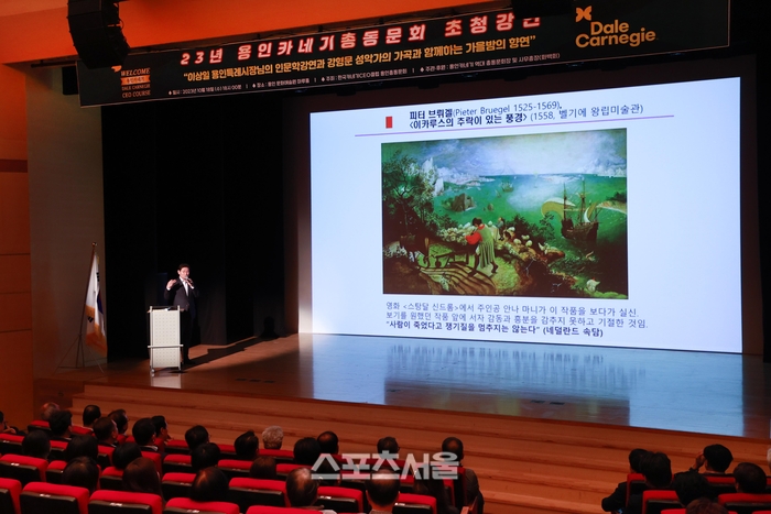 〔스포츠서울│수원=좌승훈기자〕이상일 용인특례시장은 18일 처인구 삼가동 용인문화예술원 마루홀에서 한국카네기CEO클럽 용인총동문회원 170여명을 대상으로 ‘그림과 문학과 건축이 있는 인문학 살롱’이라는 주제의 인문학 특강을 했다.