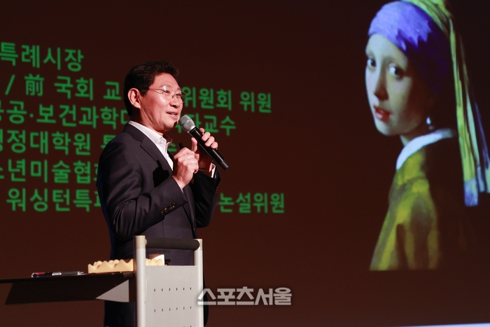 이 시장은 “프랑스 사실주의 문학의 시조로 불리는 작가 스탕달이 피렌체 산타크로체 성당에서 어떤 그림을 보고, 아름다움의 희열을 느낀 나머지 현기증을 느낀 것을 글로 남겼다. 사람들이 그림에 황홀경을 느껴 실신하는 경우도 있는데 그같은 현상을 ‘스탕달 신드롬’이라고 한다. 이는 영화 ‘스탕달 신드롬’으로도 제작됐는데 영화에서는 주인공이 피터 브뤼겔의 ‘이카루스의 추락이 있는 풍경’을 보고 감동과 흥분을 감추지 못해 기절하는 장면이 나온다”고 소개했다.