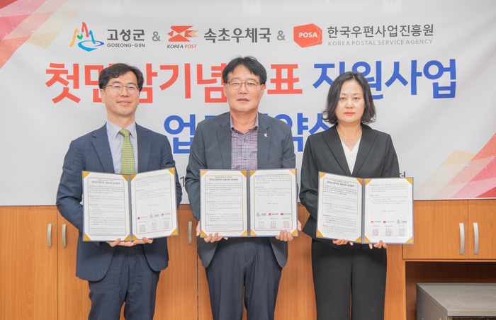[스포츠서울ㅣ김기원기자] 고성군(군수 함명준)은 10월 19일(목) 14시 군청 총무행정관실에서 속초우체국, 한국우편사업진흥원과 첫 만남 기념우표 지원사업 추진을 위한 업무협약을 체결했다.