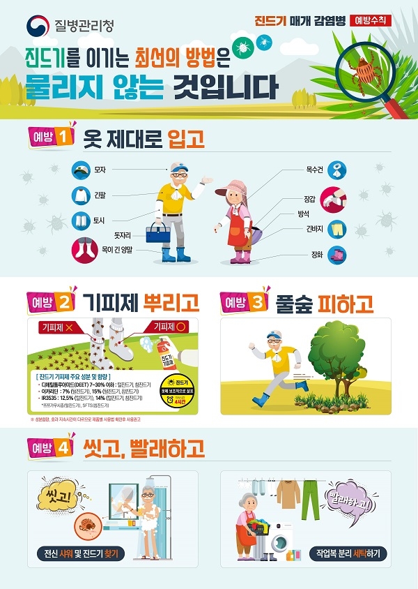 이중 쯔쯔가무시증과 중증열성혈소판감소증후군은 바이러스에 감염된 진드기에 물려 발병한다. 발열, 설사 등 증상을 보이며 특히, SFTS의 경우 치명률이 20% 내외로 각별한 주의를 요한다.