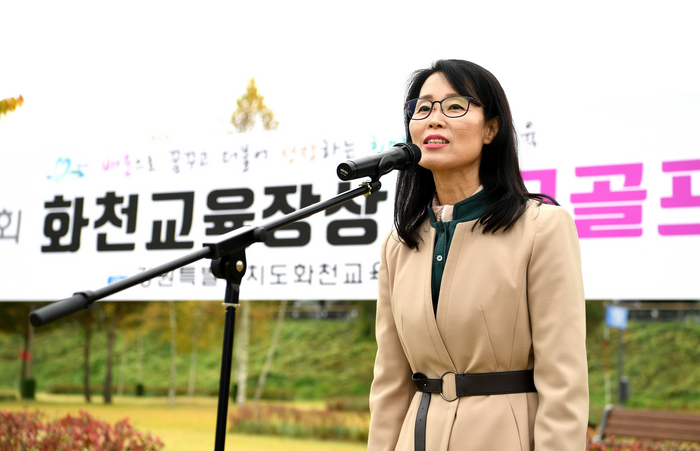 [스포츠서울ㅣ김기원기자]제1회 화천교육장상 파크골프대회 마지막날 경기가 지난 20일 하남면 용암리 파크골프장에서 김종녀 화천교육지원청 교육장, 최문순 군수, 송호관 군체육회장, 대한파크골프협회 관계자를 비롯해 지역 초등 고학년 선수들이 참여한 가운데 열렸다.