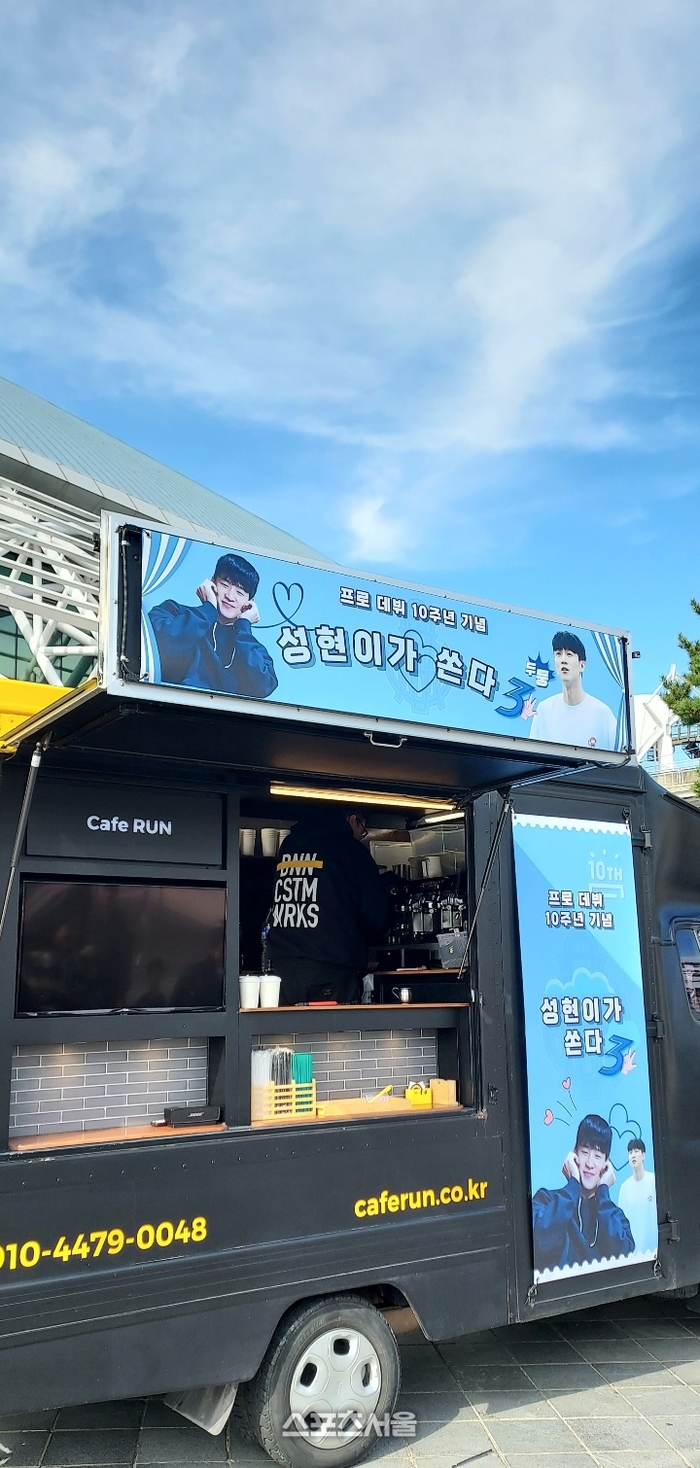 소노는 22일 고양 소노아레나에서 2023~2024 정관장 프로농구 홈 개막전을 치렀다. 개막전을 앞두고 체육관 앞에 전성현 팬들이 보낸 커피 차가 푸드트럭들과 함께 자리잡았다. 경기장을 찾은 팬들은 커피를 마시기 위해 길게 줄을 서기도 했다.