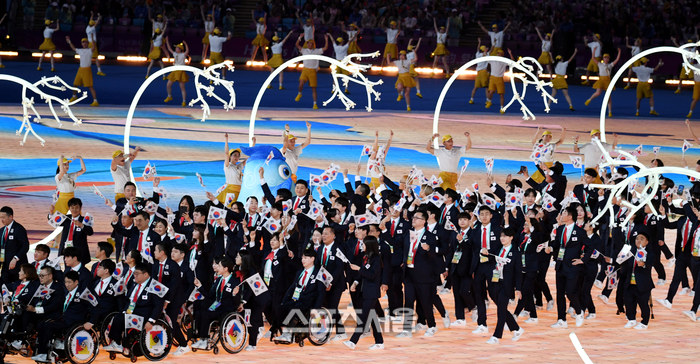 22일 항저우 올림픽 스포츠센터 스타디움에서 열린 2022 항저우 장애인아시아경기대회 개막식에서 대한민국 선수들이 입장하고 있다.
