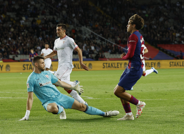 22일(현지시간) 바르셀로나의 에스타디 올림피크 루이스 콤파니에서 열린 아틀레틱 빌바오와의 2023~2024 스페인 라리가 홈경기에서다.