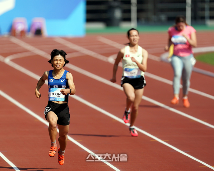 전민재가 23일 후안롱 스포츠센터 스타디움에서 열린 2022 항저우 장애인아시아경기대회 여자 200M T36 결승 경기에서 질주하고 있다.