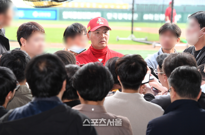SSG 랜더스 김원형 감독이 23일 인천 SSG랜더스필드에서 열린 2023 KBO리그 NC 다이노스와 준플레이오프 2차전에 앞서 취재진과 인터뷰를 하고 있다. 2023. 10. 23. 문학 | 박진업기자 upandup@sportsseoul.com