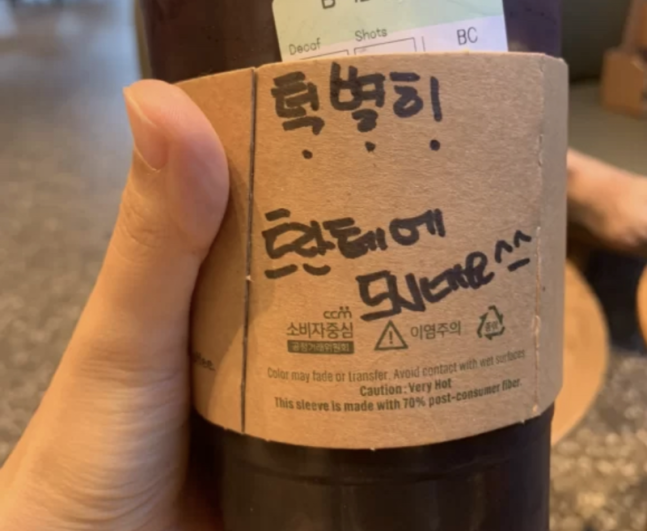 또 A씨는 “음료를 주문할 때 트란테라고 잘못 말하긴 했는데, ‘턱별히’에 강조 표시까지 너무 이상하지 않나” 조롱이 섞여 있는 것 아니냐는 의문을 제기했다.