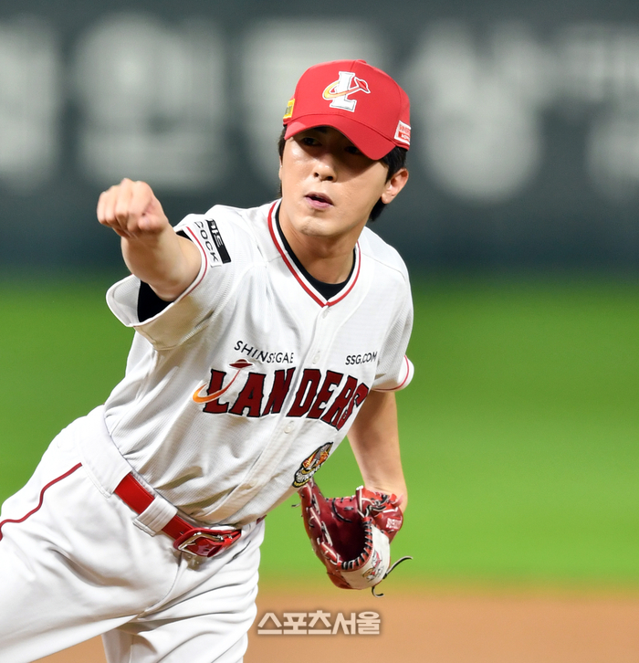 개그맨 김원훈이 23일 인천SSG랜더스필드에서 열린 2023 프로야구 NC다이노스와 SSG랜더스와의 준플레이오프2차전 경기에서 시구자로 나서고 있다. 2023.10.23. 인천 | 강영조기자 kanjo@sportsseoul.com