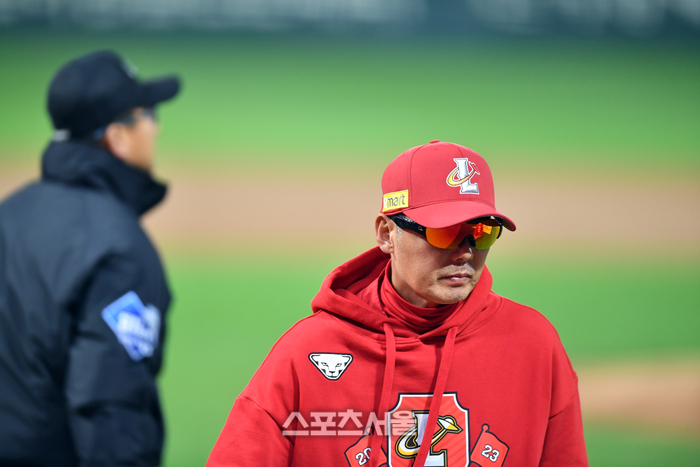 김원형 감독이 23일 인천SSG랜더스필드에서 열린 2023 프로야구 NC다이노스와 SSG랜더스와의 준플레이오프2차전 경기 8회초 심판에 어필을 한 후 더그아웃으로 향하고 있다. 2023.10.23.